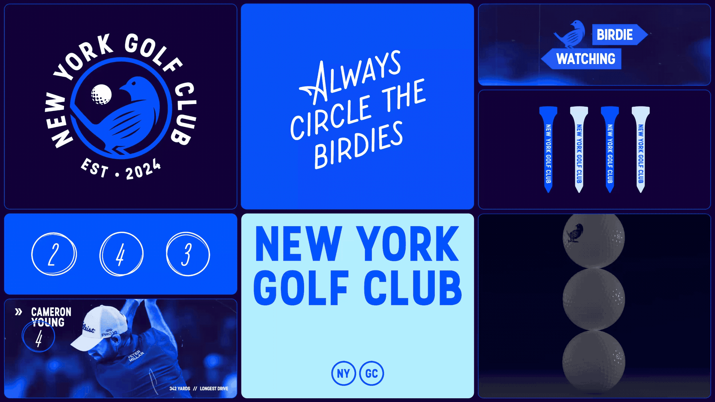 Golf hasn't changed much since its inception. We ditched the stuffy country club vibes and embraced the city's energy. Our strategy was simple: fuse golf with the Big Apple. The Eastern Bluebird, New York's state bird, became the "birdie" – a symbol of going under par, a visual shorthand for winning. NYGC repositions golf for a broader audience, not just the elite, engaging audiences, inspiring state pride, and helping take the sport to a new level of following, fandom, and fanaticism. We gave golf a New York edge.